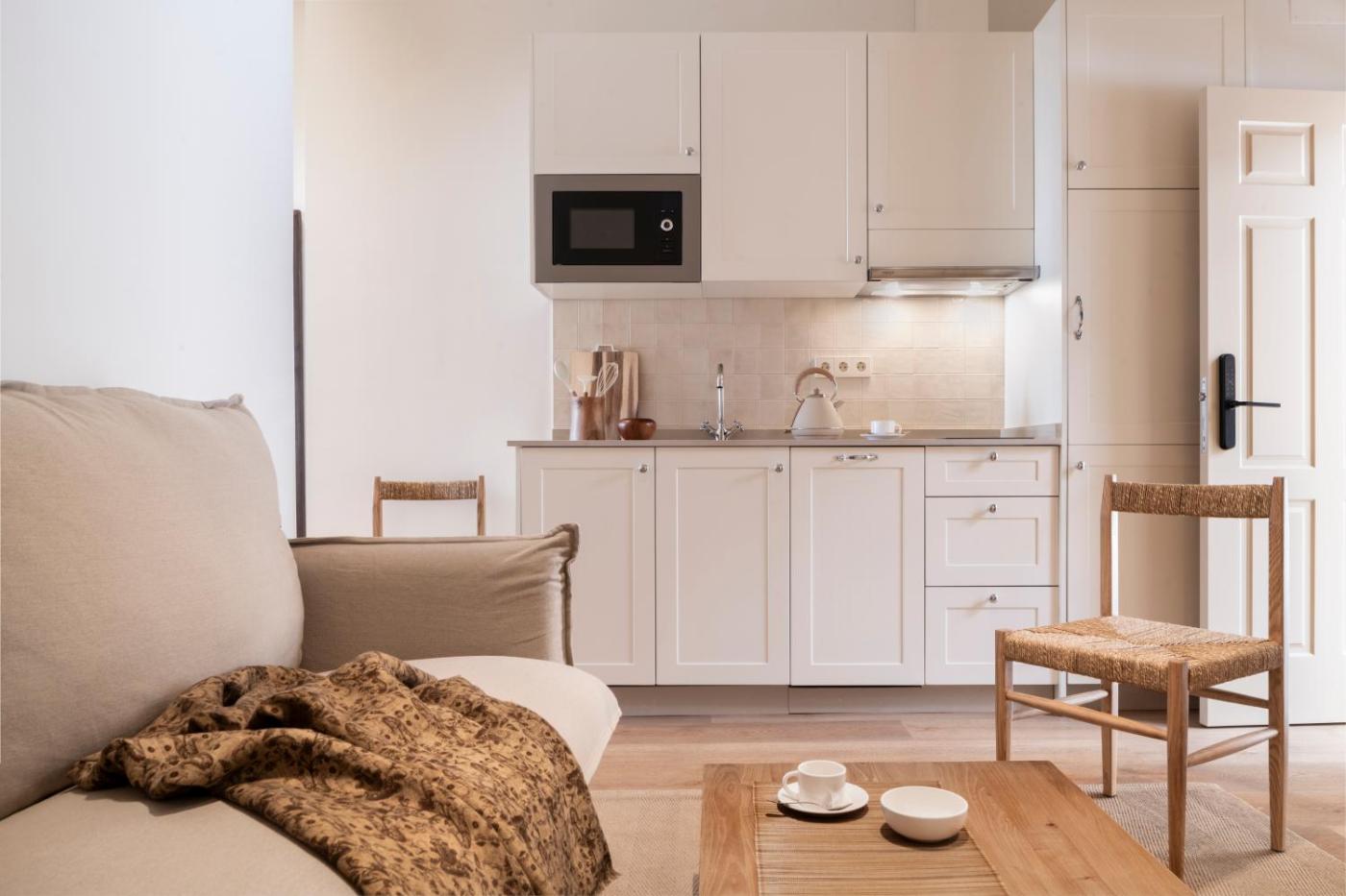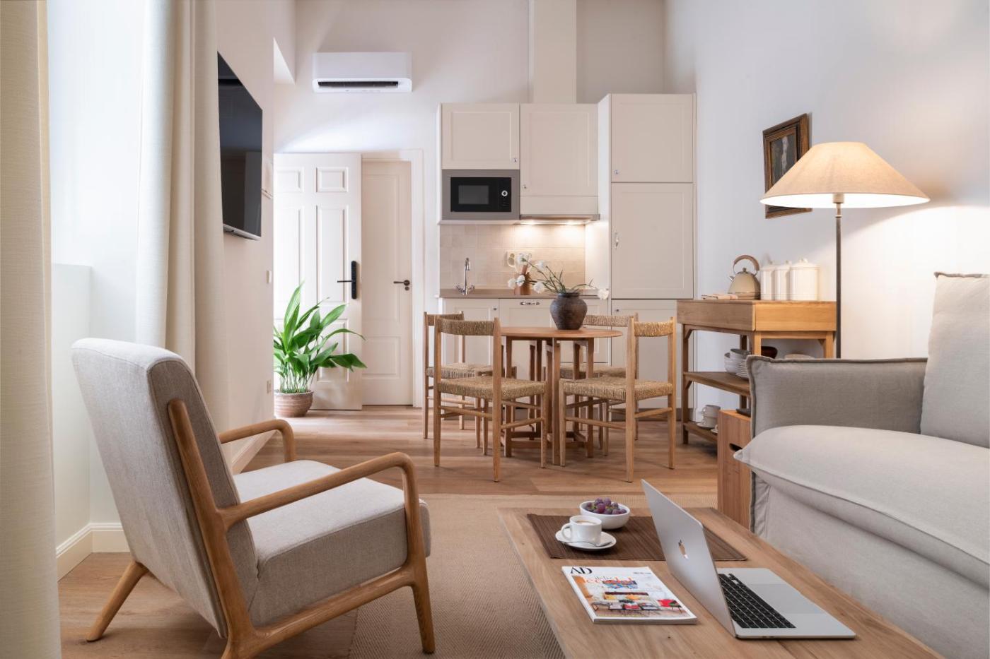 Suite Studio. The spacious studio features a private bathroom, air conditioning, a washing machine, as well as a seating area with a flat-screen TV. The well-equipped kitchen has a stovetop, a refrigerator, a dishwasher and kitchenware. The studio offers a tea and coffee maker, a dining area, a wardrobe, a sofa and a TV. The unit offers 2 beds. ;